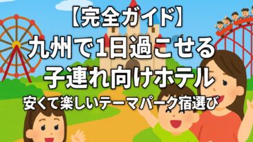 九州 【完全ガイド】九州で1日過ごせる子連れ向けホテル11選|安くて楽しいテーマーパーク宿選び 「今度の家族旅行、どこか楽しいところに泊まりたいな」 「でも予算はできるだけ抑えたいし、子供が飽きないホテルがいいなあ」 そんな風に考えているパパママ、多いのではないでしょうか?特に小さなお子さん... 2025.09.23 2025.09.27 九州