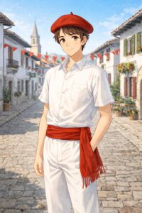 ベレー帽(ベレ・バスク)が 発祥、白+赤腰帯の男性スタイル |