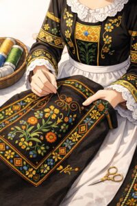 驚きのポイントは、刺繍が「男性の仕事」だったこと!重い生地に針を刺す力仕事のため、男性が担当し、女性はレース編みを担当するという分業体制が確立されていたんです。父から息子へと受け継がれる刺繍のパターンは、その家族のアイデンティティを表すものでもありました。