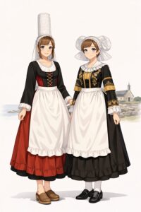 重要なのは、「フランスの民族衣装」という単一のスタイルは存在しないという点です。フランスは国土が広く、地方ごとに気候も文化も全然違います。そのため、民族衣装も地域によってまったく異なるデザインに発展していきました。