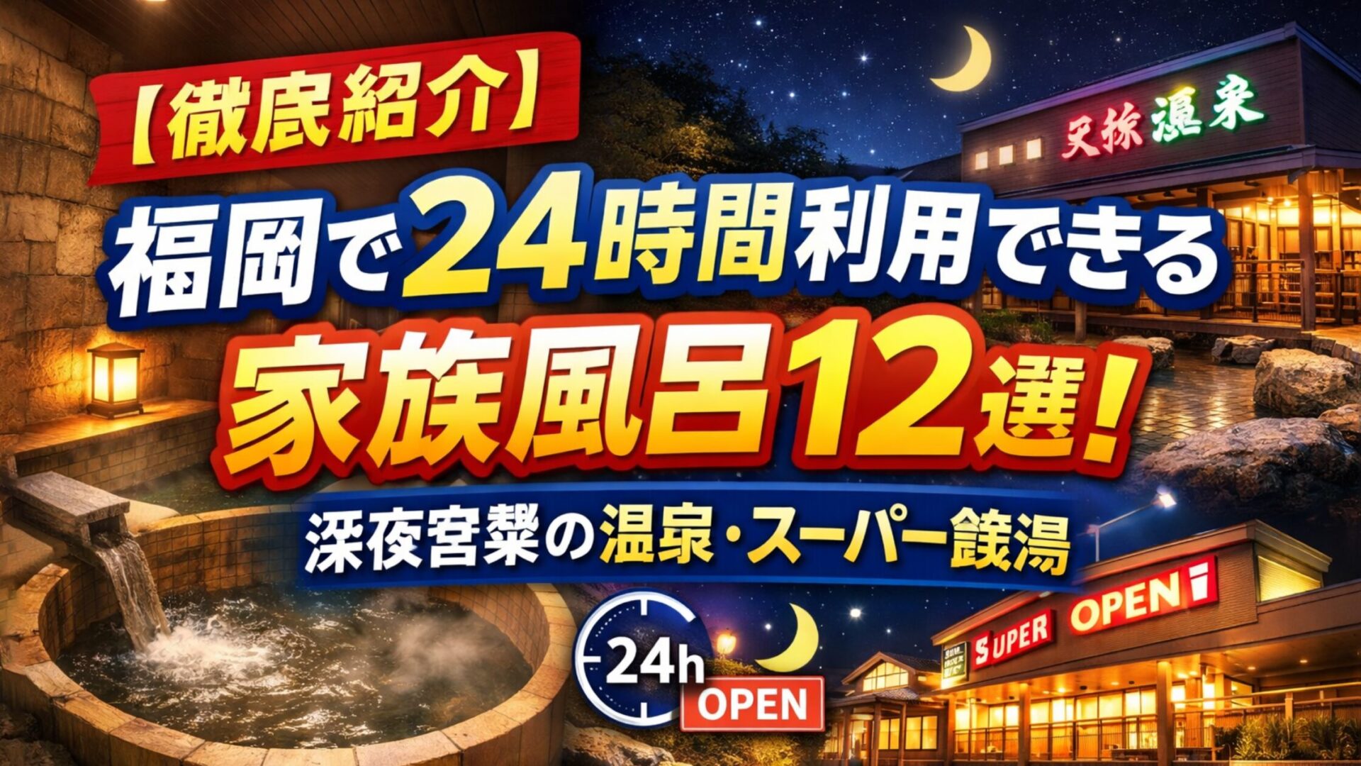 この記事では、福岡で24時間・深夜営業している家族風呂を厳選してご紹介します。天然温泉が楽しめる施設から、健康ランドのような大型スーパー銭湯まで、営業時間や料金、設備の詳細をまとめました。ぜひ、お出かけの参考にしてくださいね!
