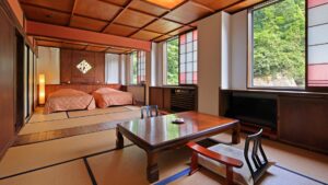 特に川側の客室は温泉街の景色を一望できるのが最高なんです!大正ロマンの意匠が取り入れられた窓や調度品も素敵で、お部屋にいるだけで特別な時間を過ごせます。