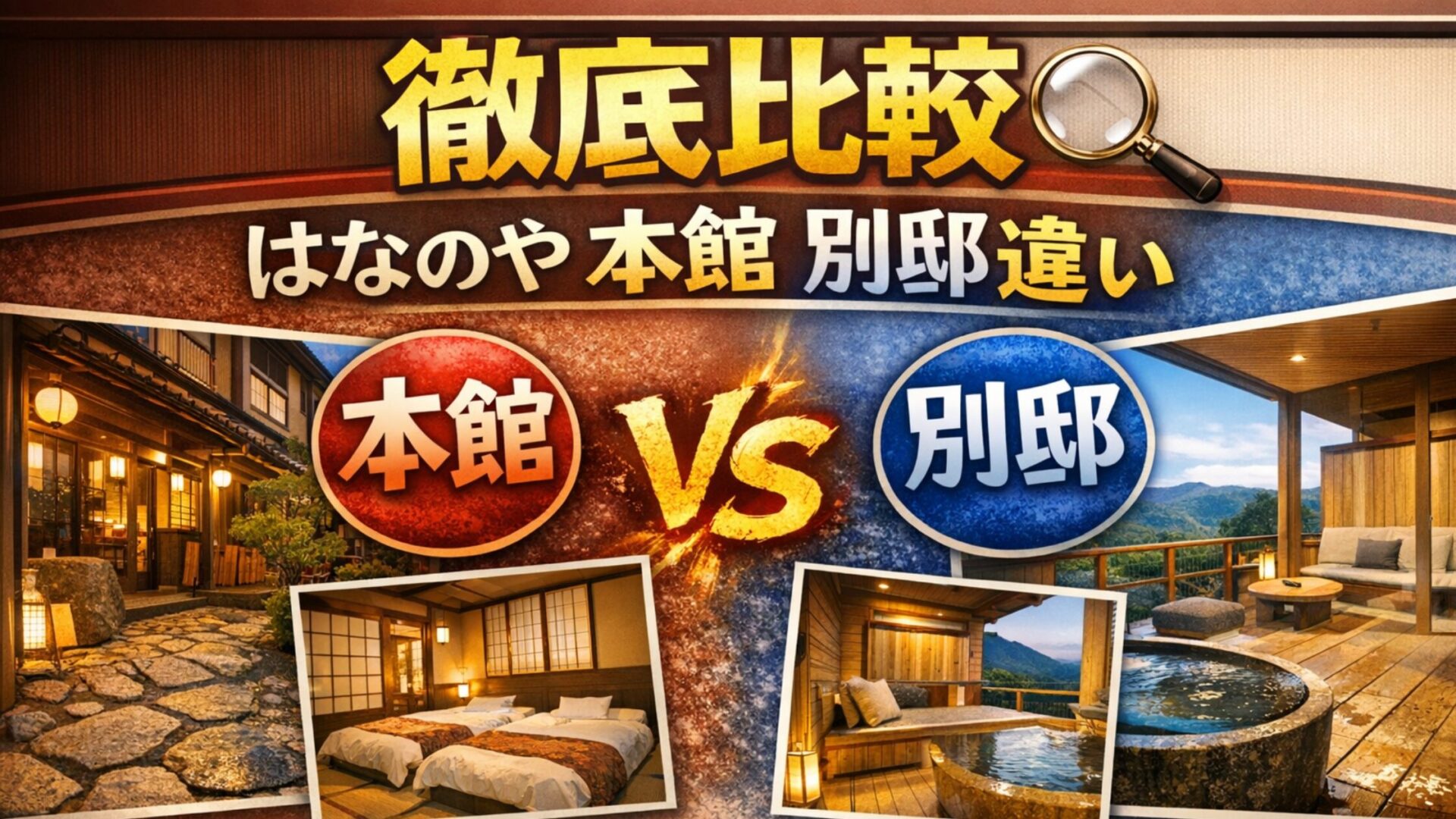 この記事では、写真で見る雰囲気の違い、実際のレビューから分かる満足度、料金相場の差、そして別邸のスーペリアと本館の特別室の比較まで、予約前に知っておきたいポイントを分かりやすく整理します。