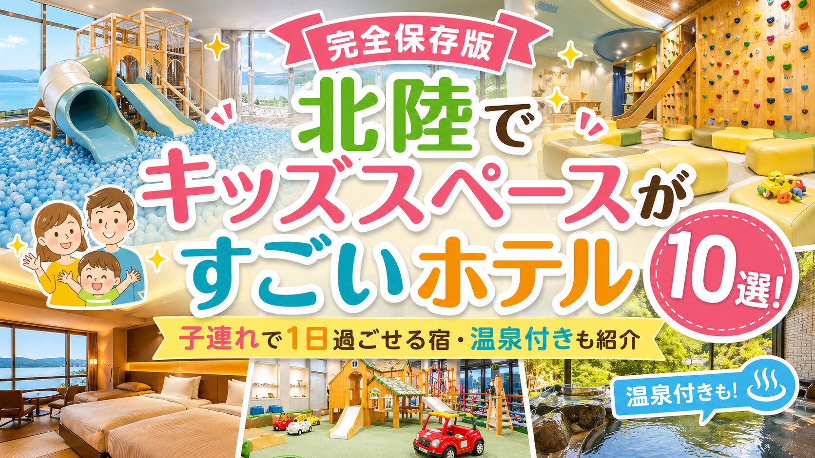この記事では、北陸(石川・富山・福井・新潟)でキッズスペースがすごいホテル10選を厳選してご紹介します。雨の日でも子どもが1日中遊べる屋内施設はもちろん、温泉でパパ・ママもしっかりリラックスできる宿ばかり。子連れ旅行の参考にしてみてくださいね♪