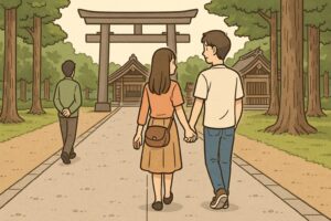 参拝という行為そのものが、相手への思いやりと誠実さを形にする時間になるんですよ。手をつなぎたい気持ちをぐっと我慢して、参道の端を歩く。本殿では手を離して、それぞれが神様と向き合う。その後、再び手をつなぐ——こうしたプロセスの全てが、2人の関係を深める要素になるんです。