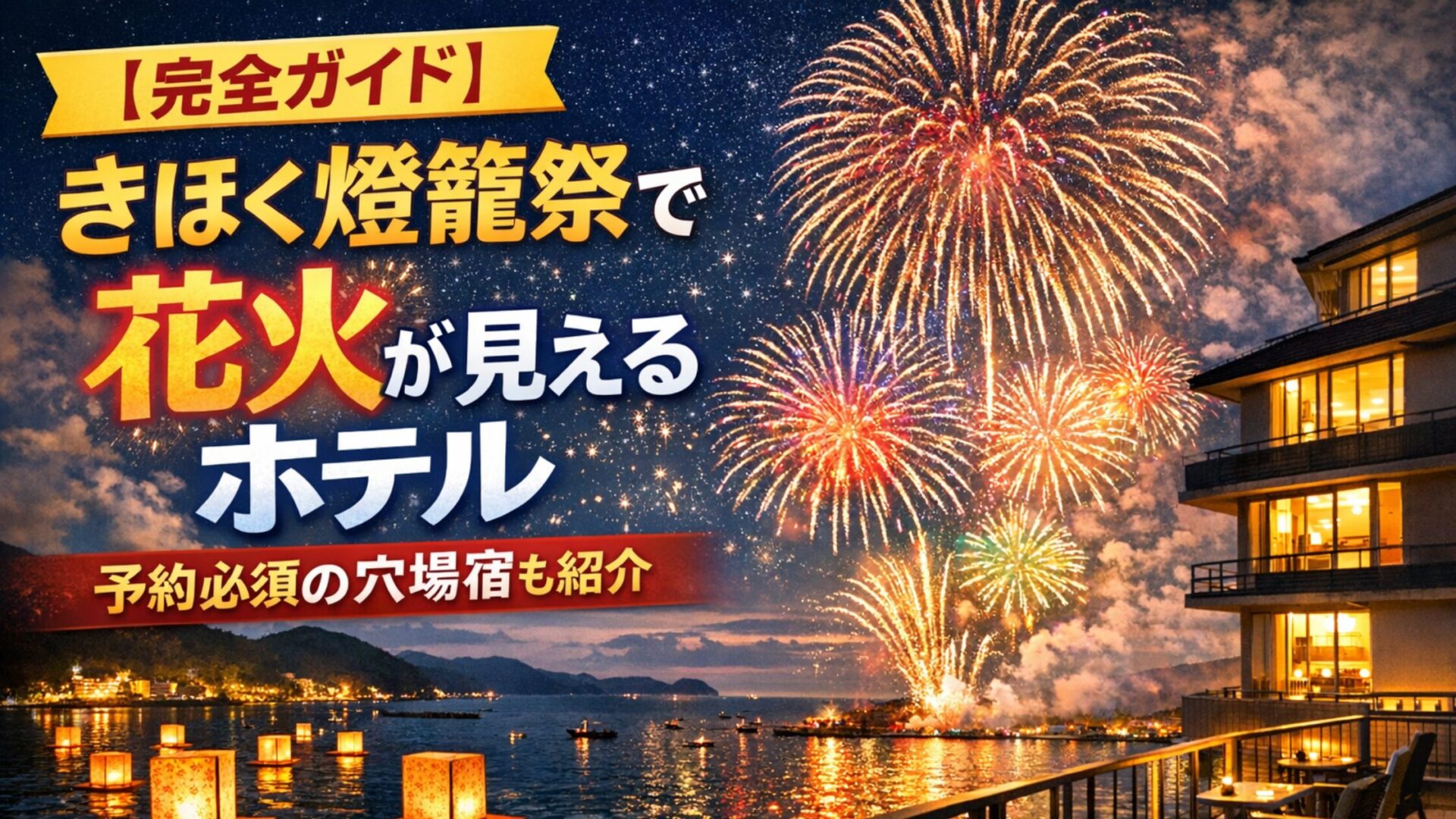 この記事では、きほく燈籠祭で花火が見えるホテルから、会場近くの人気宿、予約のコツ、穴場スポットまで、地元情報も交えながら詳しくご紹介していきます。2025年の開催は7月26日(土)。さあ、最高の夏の思い出作りの準備を始めましょう!