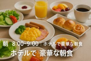 朝 8:00-9:00 | ホテルで豪華な朝食