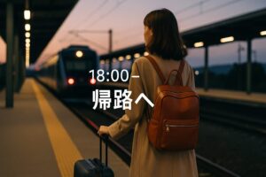 最後に、朝に預けていた三宮駅のコインロッカーで荷物を回収します。旅の思い出とともに、神戸らしい優雅な時間の余韻を感じながら、帰路につきましょう。