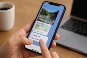 「この温泉、すごく良さそう!」って思った時、写真を送ったり、Googleマップのリンクを貼ったり、予約サイトのURLを共有したりが簡単にできます。文字だけじゃ伝わりにくい情報も、視覚的にパッと共有できるのがLINEの良いところです。