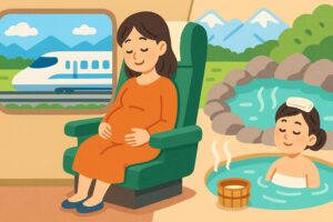 例えば、妊娠20週目で北海道への温泉旅行を計画していた場合、移動は新幹線を利用し、観光は無理のない範囲で、温泉でゆっくり過ごすなど、リラックスできる旅行プランに変更するのがおすすめです。