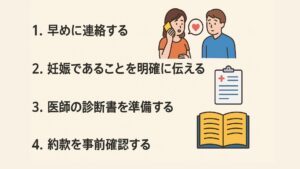 「体調不良」など曖昧な伝え方だと、妊娠によるキャンセルとみなされない可能性があります。「妊娠が分かったため」と明確に理由を伝えましょう。
