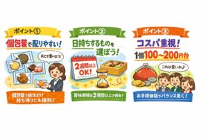 ポイント②:日持ちするもの(賞味期限2週間以上が目安)