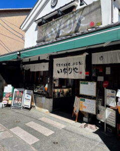 南口大鳥居エリアには、草餅の「かわしまや」や漬物の「しおのくら」など、お土産にぴったりの商品を扱う店が多いですね。