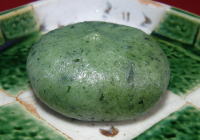 春に伊吹下ろしと揖斐川水系に育まれた良質なヨモギを手摘みし、白軸・赤軸・青軸と呼ばれる3種類をブレンド。あんは十勝・北見の小豆を使用し、自社で炊き上げます。