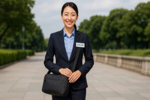 混雑した場所や人と隣接する場面では、さりげなく手をバッグの開け口に添えるのがプロのテクニック。これだけで「この人は警戒してるな」というメッセージを発信できます。