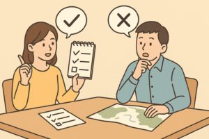 「旅行は計画通りに進まないもの」と最初から割り切っておくことも大切です。電車が遅れたり、お店が休みだったり、雨が降ったり…そんな時こそ、二人で協力して乗り越える楽しさがあります。