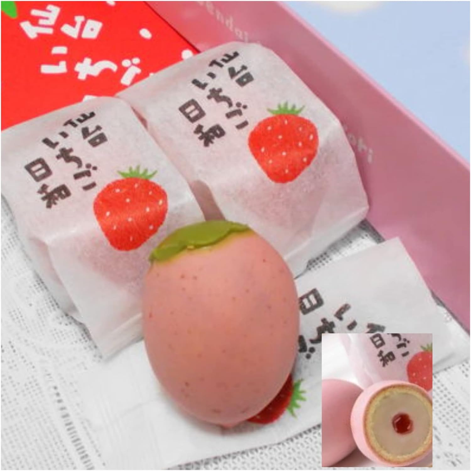 「かもめの玉子」で有名なさいとう製菓が作る、いちごそっくりの見た目がかわいいまんじゅう。宮城県亘理町産の仙台いちごを使用していて、ピンクのいちごチョコでコーティングされています。