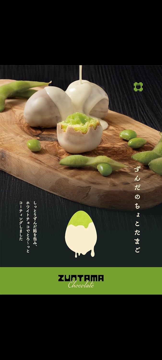 ひと口サイズのかわいいお菓子。しっとりとしたスポンジケーキの中にずんだ餡をたっぷり閉じ込め、ホワイトチョコでコーティングした贅沢な一品です。