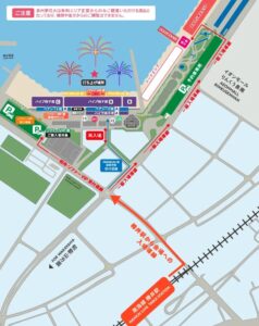 りんくうプレミアム・アウトレット周辺には複数の有料駐車場が点在。駅から南に徒歩移動できるため、混雑を避けつつ観覧可能。ただし徒歩距離があるため、歩きやすい靴で。