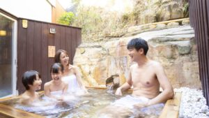 そして彩朝楽だけの特徴が貸切風呂(60分1,000円)があること!露天風呂も付いているので、家族水入らずでゆっくり温泉を楽しめますよ。