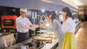 オーシャンビューのレストランで、海鮮を中心とした豪華な料理を堪能でき、特別感を演出。ライブキッチンで手際よく調理される姿を見ながら食べられるのも楽しみのひとつです。