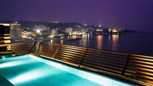 和邸は、最上階からの絶景、専用ラウンジ、天空露天風呂と、特別感たっぷりのプレミアムな体験ができます。価格は高めですが、記念日や特別な旅行には最高の選択肢です。