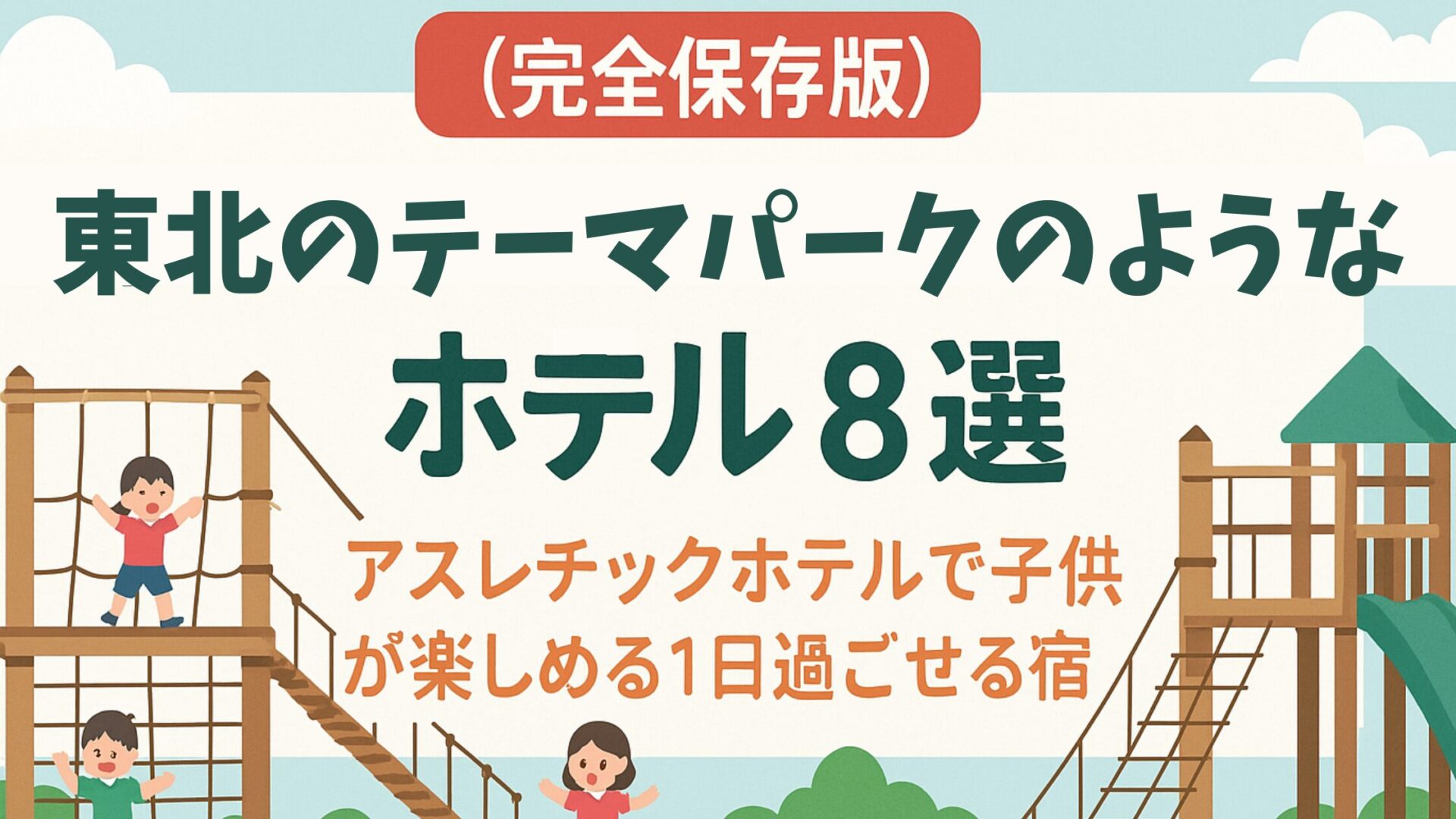 東北のホテルは、単なる宿泊施設ではなく、それ自体が目的地になるほど充実した施設ばかり。アスレチックホテルで体を動かしたり、プールで思いっきり遊んだり、文化体験で学んだり…子供が楽しめる要素が満載です。